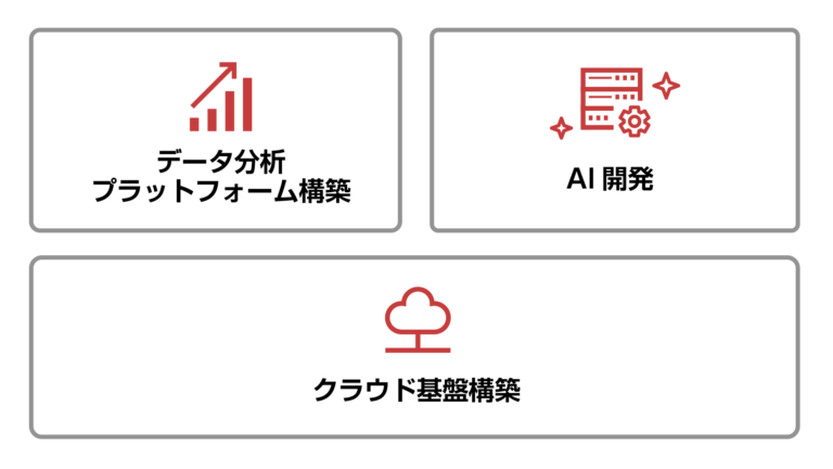 主にクラウド環境にて、データ収集から、データ整理・統合、データ分析、データ可視化まで、データ分析に必要なこと、また、AI開発を、海外の先進テクノロジーの開拓や自社パッケージを含むサービスの提供を通して支援します。